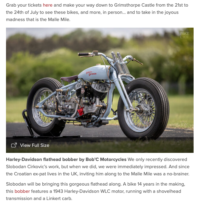 But, what made it even better was receiving an invite by BikeExif - The Worlds Biggest Motor Network & Magazine to be part of their showcase portfolio at the Malle Mile Festival. This was just an amazing and proud moment for BOB'C and the whole team.